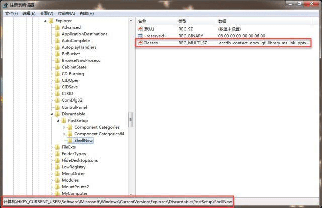 HKEY_CURRENT_USER\Software\Microsoft\Windows\CurrentVersion\Explorer\Discardable\PostSetup\ShellNew\Classes删去其中你不要的扩展名