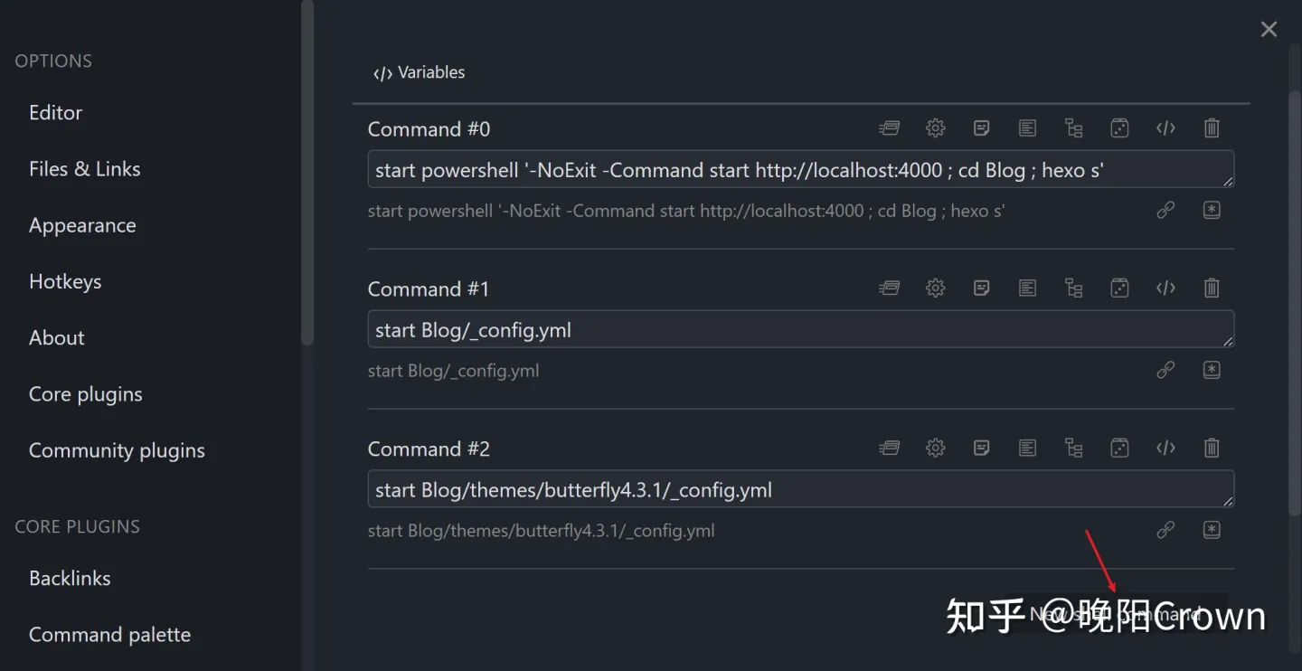 而 Shell commands 可以在 Obsidian 中设置好命令,并通过 Obsidian 的命令面板或快捷键快速运行。