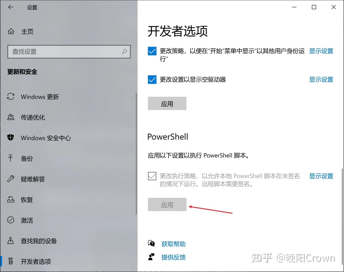 如果你遇到了这个错误:hexo:无法加载文件C:\Users\xxx\AppData\Roaming\npm\hexo.ps1,因为在此系统上禁止运行脚本。 只需在 Windows 设置>更新和安全>开发者选项,找到 PowerShell,点下应用即可: