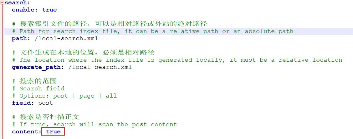 - 可以设置搜索内容,若仅搜索标题 (搜索内容 content 设置为 false) 则会加载快到飞起